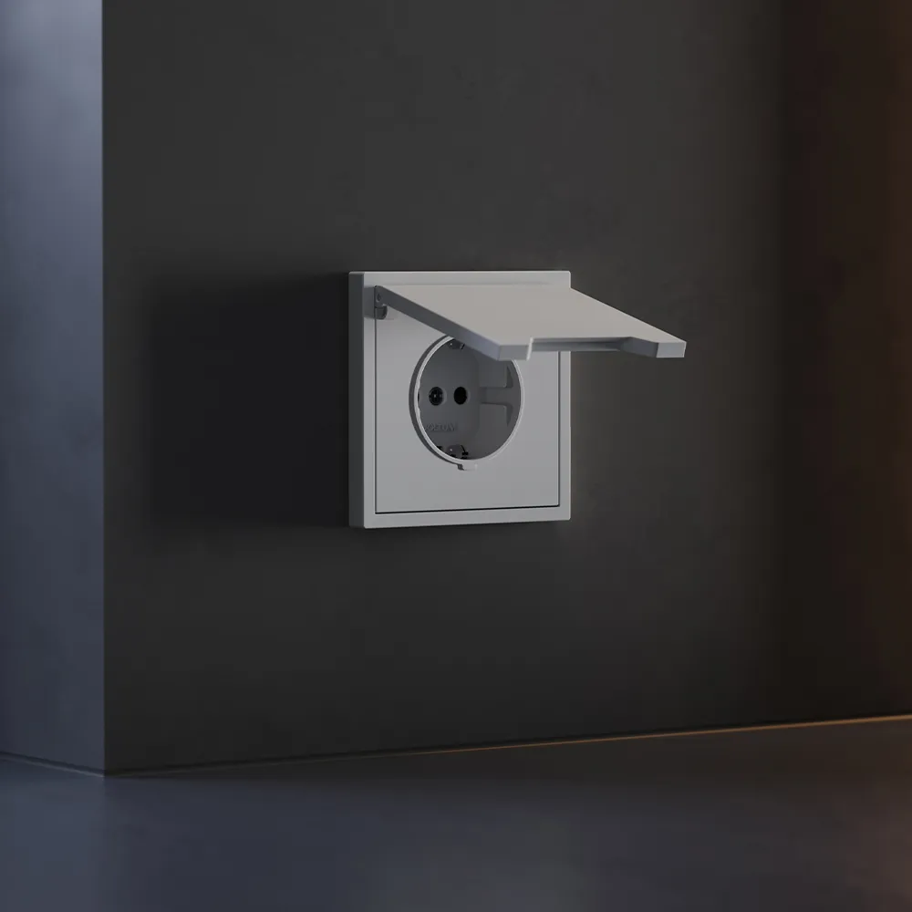 Розетка VOLTUM S70 с заземлением и защитными шторками и откидной крышкой  — это решение максимальной безопасности и эстетики для современного интерьера. Идеально подходит для детских комнат, ванных, прихожих, кухонь и уличных зон под навесом, где важна защита от пыли, брызг и случайного контакта с токоведущими частями.